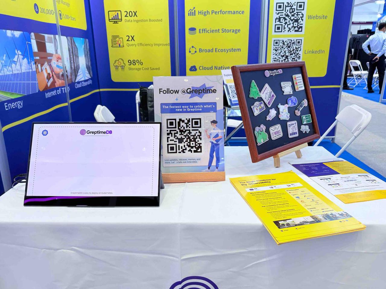 Amid dynamic exhibits featuring enterprise solutions, data centers, and AI infrastructure, Greptime's booth drew significant attention with video introductions and live demos. Our focus centered on: